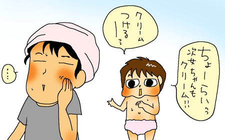 いつもね、クリーム塗ってるの見つけると、次女ちゃんもってうるさいんです。