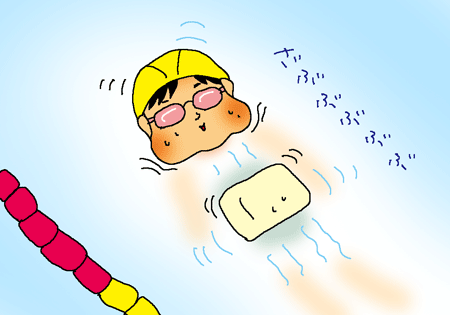 ビート板を使ってても、25メートルたどり着くのもやっとこさ。