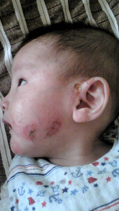 ちょっと目をはなしてほんの数分、トイレに行っている間だけなのに、掻き壊して、かさぶたが全部落ちてどろどろになったほっぺに気が遠くなる日々。