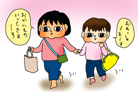 長女が次女を誘って、お買い物に行くというシチュエーションです。