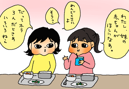 ともにお姉ちゃんがいて、2人姉妹の妹のふたりがこんな会話を。