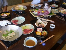 牛しゃぶにお造りに茶碗蒸し、天ぷら、鯛の釜焼などなど・・・