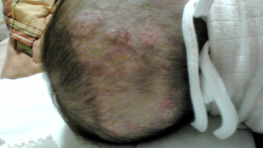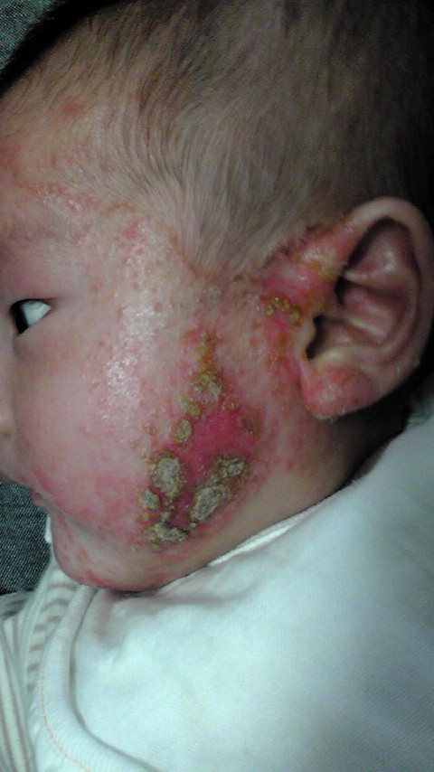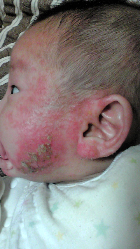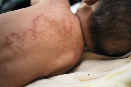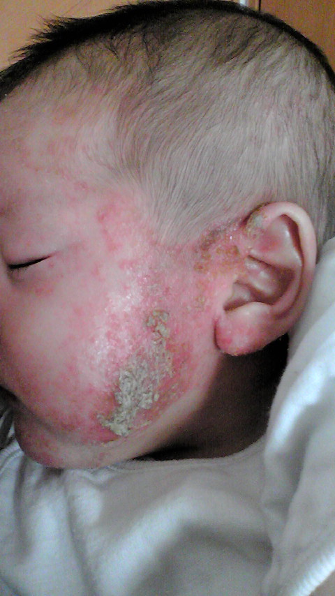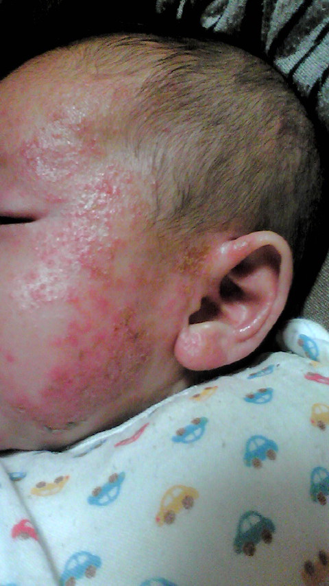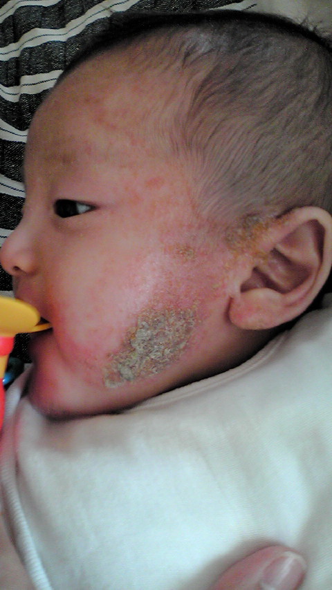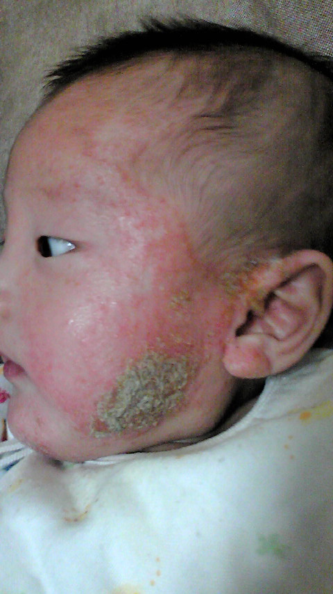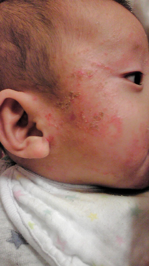 顔以外にも、頭と背中にも湿疹でてるんです。