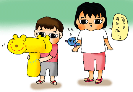 キャラ物の抱っこちゃんみたいなのとか、ビーチ素材のおもちゃが当たるくじ引き。
