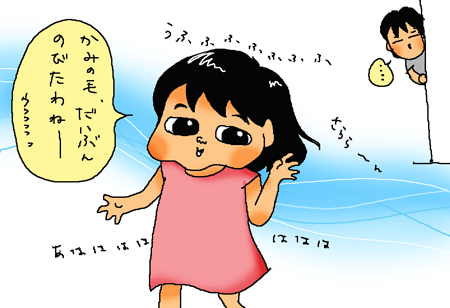ロングヘアーに憧れて、髪の毛のばし中の長女ちゃん。