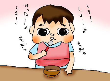 夕食にお味噌汁などを出したら、お汁だけを先に食べてしまって、おかわりを要求。
