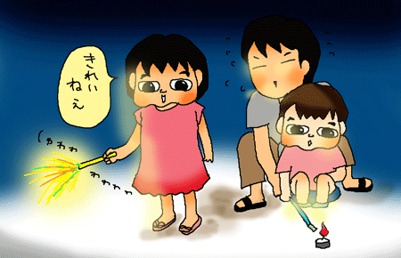 そう、長女ちゃんは手持ち花火をやったのは初めて。