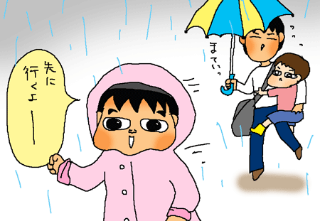 おかあぱんひとりで長女ちゃん、次女ちゃん雨の中。