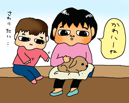 次女ちゃんはモルモットをわしづかみにしようとしてました。
