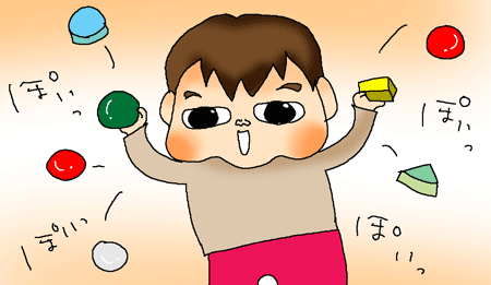 あとは、紙に鉛筆でぐりぐり描くことができるかとか、積み木がつめるかとか、ワンワンなど簡単な言葉がわかり始めているかとか、保健師さんと遊びながらチェックしたり。