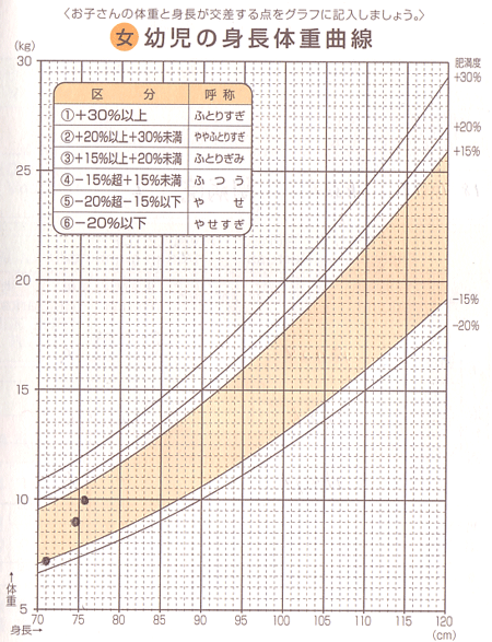 その”ん?”は何かといえば、母子手帳の発達曲線のページを見て、栄養士さん。