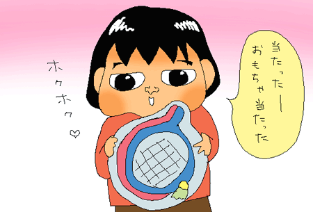 バドミントンセットとボール(おもちゃは2個選べる)をゲットしてホクホク。