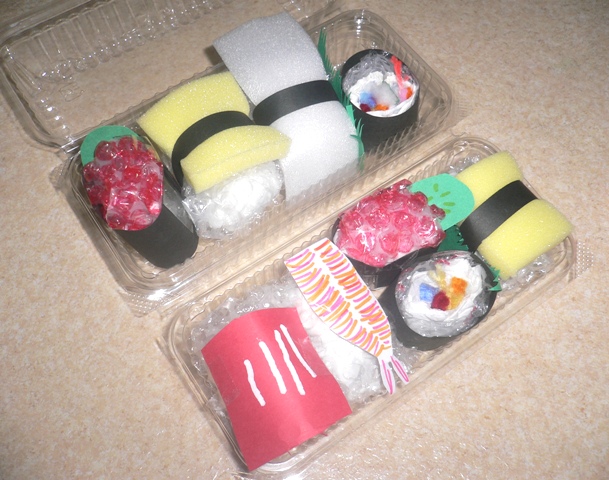 ご飯の部分は、新聞紙丸めて、ティシュで包んで、ぷちぷちで巻きました。