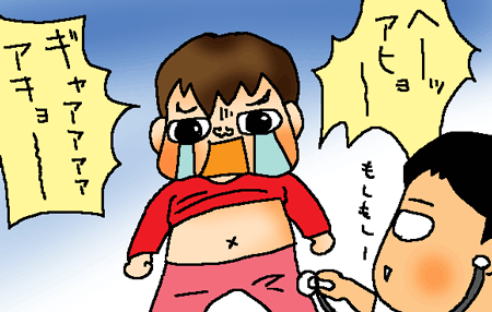 聴診器を当てられただけで、大騒ぎ。