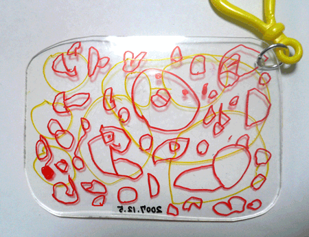 今日、プラバンでキーホルダー作りました。