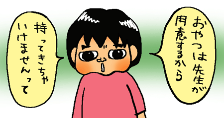 先生の「おやつは持ってきてはいけません」の言いつけを、律儀に守ろうとする長女ちゃん。