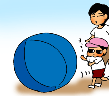 ここでも、大玉に先を越され、大玉を追いかける長女ちゃん。