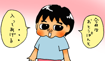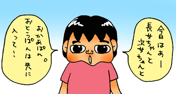今日も、「今日は誰とお風呂に入るのー?」とおとうぱんが聞きました。