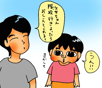 ウチの階段はリビングからすぐ登れてしまうので、リビングから離れて、家事をしている間、次女ちゃんを見ててと長女にお願いをしました。