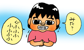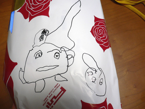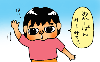 家で絵を描いてみてよーなんて言っても、恥ずかしいのか、よけいに「嫌だー」などと言って逃げて行き、めったに描いてくれません。