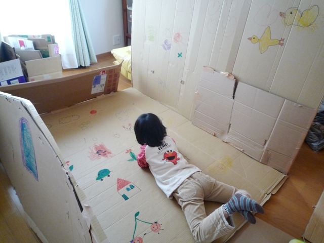 仕方がないので、家の中にダンボールを入れて、「好きにしていいよ」と(^皿^;;)
