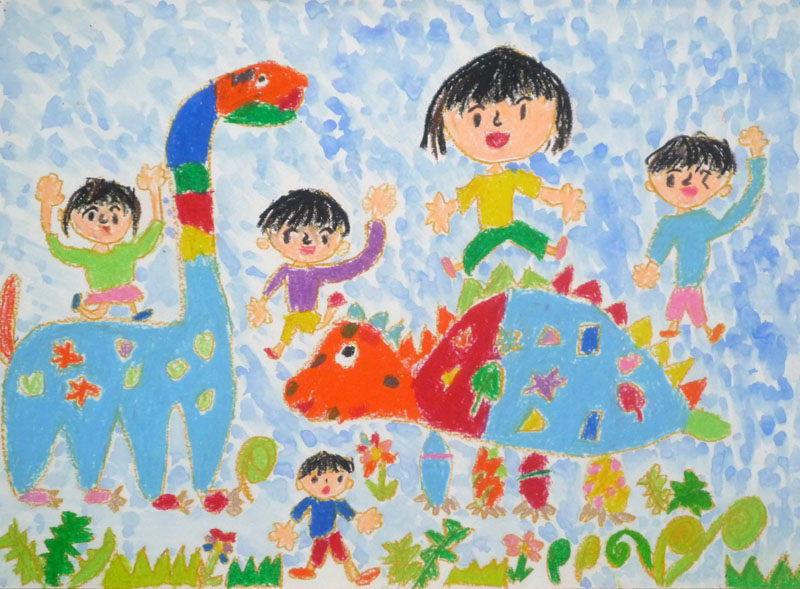 これは、恐竜とみんなの絵。