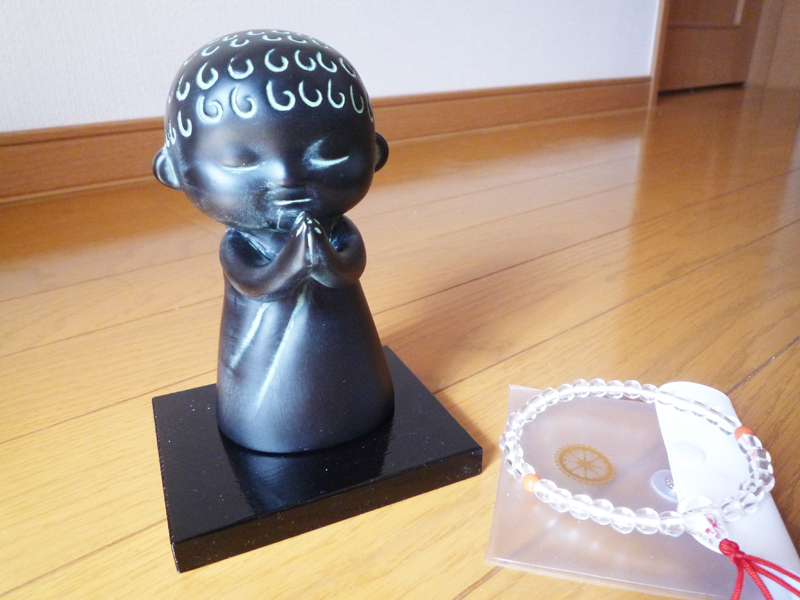 卒園記念でもらった、ののさま像とお子様用数珠。