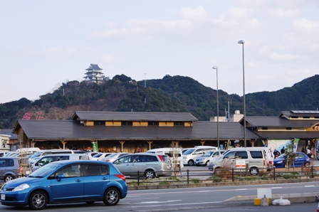 向こうに見えるのは、日和佐城。