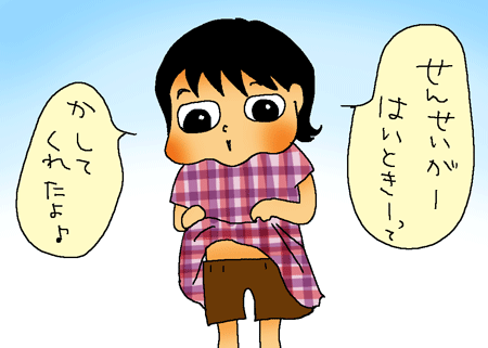 とりあえず、言われるがままにショートパンツをはいて帰ってきた長女ちゃん。