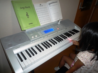 簡単なところで「キラキラぼし」などは、光のとおりに鍵盤を押せば、早速、長女ちゃんでも曲が弾けましたよ(^^