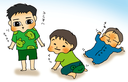 お兄ちゃんとハイハイちゃんは二人ともカエル柄だけどね(^^