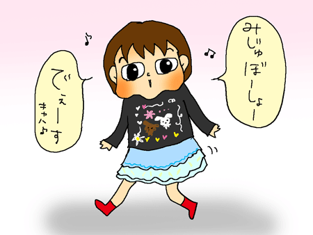 朝から、お休みなのでスカートをはかせてもらって、超ご機嫌。