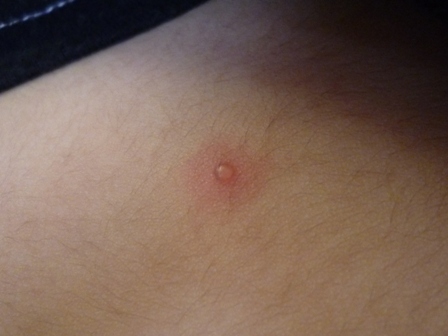 半日たったけど、赤いぽちが水疱にはまだ育ってなくて、このまま収束するんじゃないかと思える感じです。