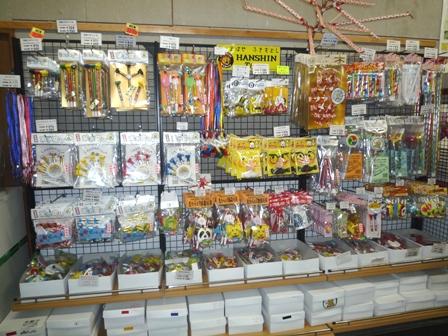 ずらりと並んだおもしろ吹き戻しのかずかず。