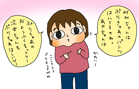 先日から、ハートキャッチプリキュアのパンツが欲しいと言っていた次女ちゃん。