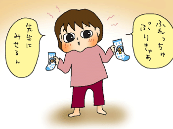 次女ちゃん、大喜びで、先生に見せるんだと言って早速、保育園に靴下を履いていきました。