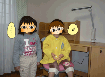最後に机の前で長女ちゃんと次女ちゃんのツーショット。