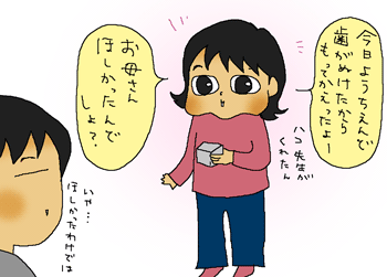 今日、幼稚園で歯が抜けたそうで。