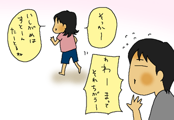「どうやって出てきたのー?よいしょよいしょした?」