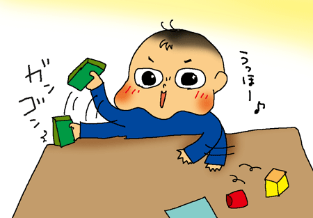 それが、積み木をガンガン机に打ち付けたりですね・・・