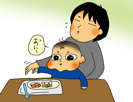 と、スプーンに乗せて顔色を伺って食べさせてるんだよ。