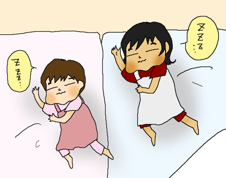 長女ちゃん、次女ちゃん今日はおとうぱんと寝てね♪」