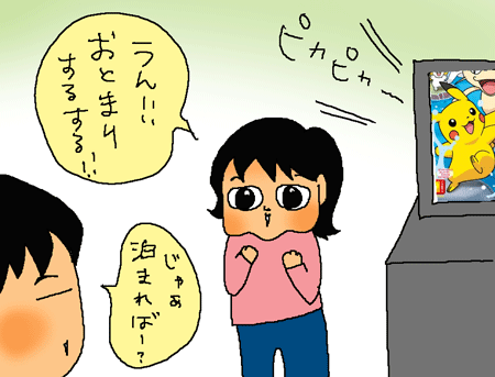 今日は珍しく、「うん!お泊りする」ってなお返事。